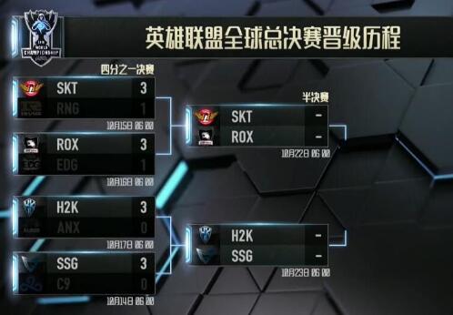 s6總決賽四分之一決賽在今日已經(jīng)全部結(jié)束,此次晉級四強(qiáng)的分別是來自LCK的三只隊伍,SKT、rox、ssg戰(zhàn)隊自己來自歐洲的H2K戰(zhàn)隊,下面小編就為各位玩家們帶來lols6半決賽賽程一覽。
