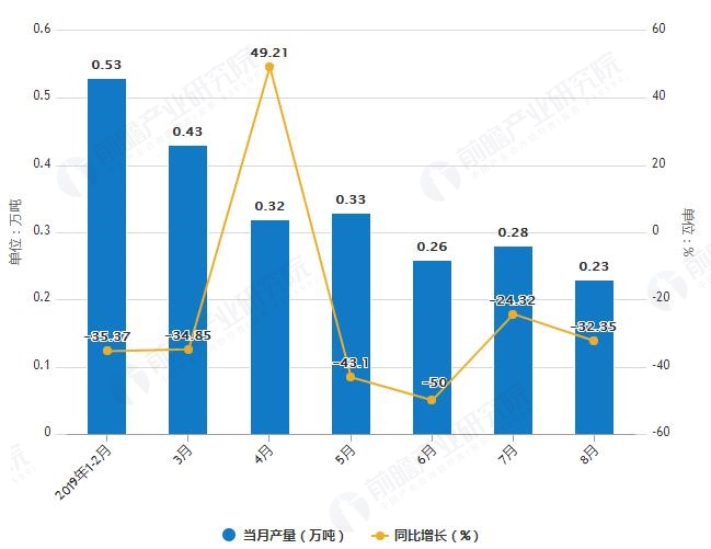 據(jù)國(guó)家統(tǒng)計(jì)局統(tǒng)計(jì)數(shù)據(jù)顯示,2019年1-2季度湖南省化學(xué)農(nóng)藥原藥產(chǎn)量波動(dòng)幅度不大,2019年7月湖南省化學(xué)農(nóng)藥原藥產(chǎn)量為0.28萬(wàn)噸,同比下降24.32%。2019年1-8月湖南省化學(xué)農(nóng)藥原藥產(chǎn)量為2.49萬(wàn)噸,...