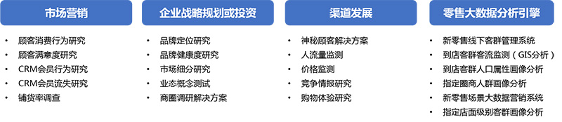 當(dāng)傳統(tǒng)“人”“貨”“場”的消費場景被迅速重構(gòu),消費者體驗和數(shù)據(jù)驅(qū)動的泛零售狀態(tài)成為焦點,企業(yè)如何通過新零售為品牌賦能成為各行業(yè)關(guān)注重點。華夏經(jīng)緯零售研究包括店鋪形象研究、動線研究、布局研究、陳列研究、店內(nèi)銷售服務(wù)研究、消費體驗研究、鋪貨率調(diào)查等。