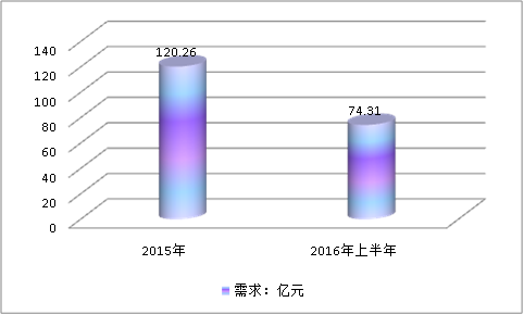 根據(jù)華夏經(jīng)緯市場調(diào)查公司近當年發(fā)布的市場調(diào)研報告數(shù)據(jù)顯示,2015年國內(nèi)錦綸工業(yè)長絲產(chǎn)品供給能力為125.08億元,到2016年上半年產(chǎn)品市場供給能力達80.02億元。2015-2016年錦綸市場需求分別為120.26億元,到2016年上半年市場需求量為74.31億元。